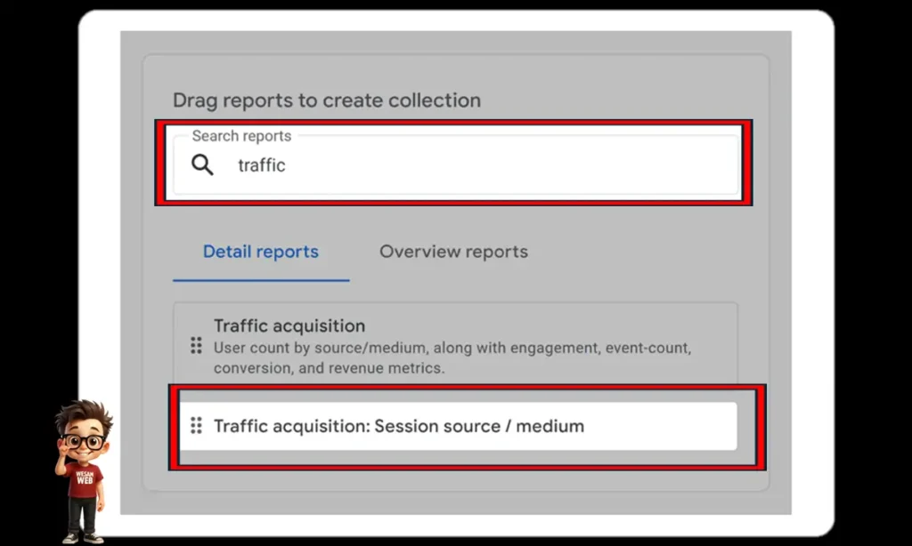 لنفترض أنك تريد تخصيص تقرير “اكتساب الزيارات (Traffic Acquisition)” ليبدو مشابهًا للتقارير التي كنت تستخدمها في Universal Analytics.